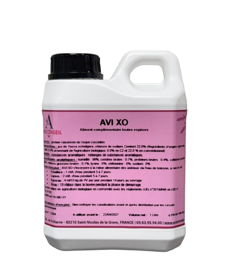 • Volailles et Lapins : 2 ml/L d’eau pendant 5 à 7 jours consécutifs, pouvant être augmenté à 5 à 10 ml/L d’eau pendant les 3 premiers jours.